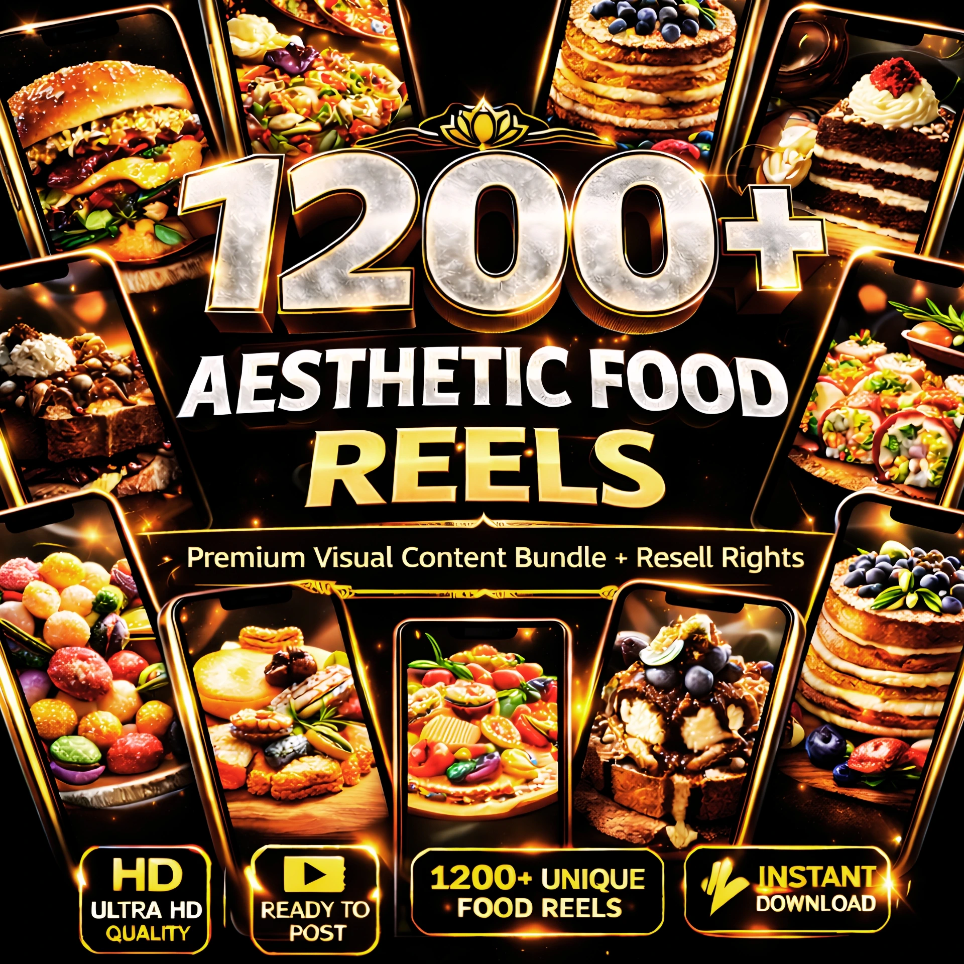 βοΈ 1200+ HD aesthetic food reels (ready-to-post)